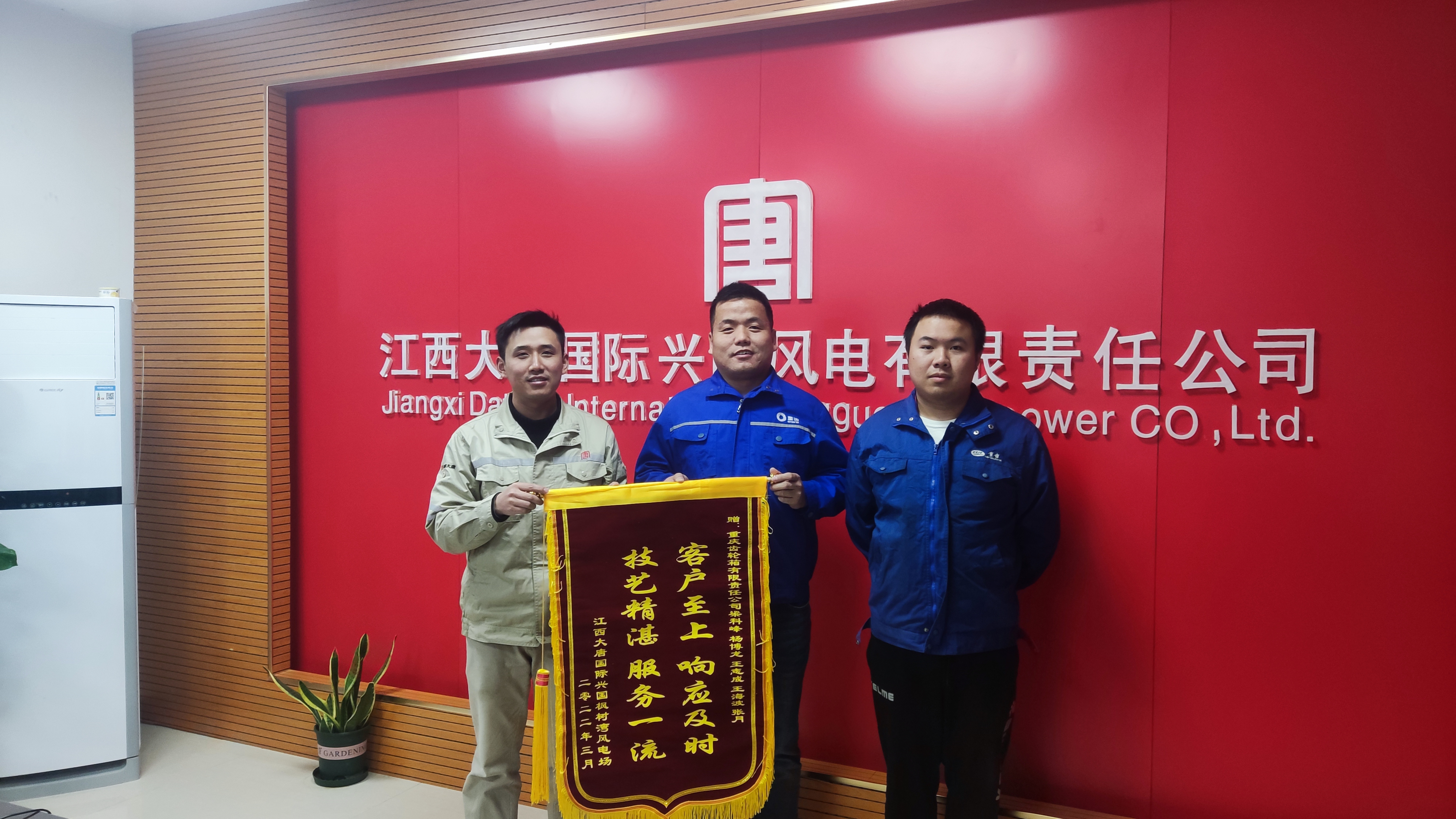 2022年3月8日,重齒公司獲得江西大唐云峰嶂風電場贈予錦旗一面。錦旗寫道:客戶至上、響應及時,技藝精湛服務一流。這短短的16個字包含了梁科峰、楊博龍等五名運維同志連續(xù)多天的汗水和辛勞。在極端天氣凍雨影響,道路結冰、設備無法進場作業(yè)等困難面前,他們各司其職,加班加點,用最短時間圓滿完成消缺工作。他們辛勤付出、不辭辛苦、任勞任怨的工作精神,把業(yè)主的需求放在第一位的工作態(tài)度,得到了業(yè)主的高度認可,也為公司實現(xiàn)首季開門紅匯聚了強勁的精神力量。